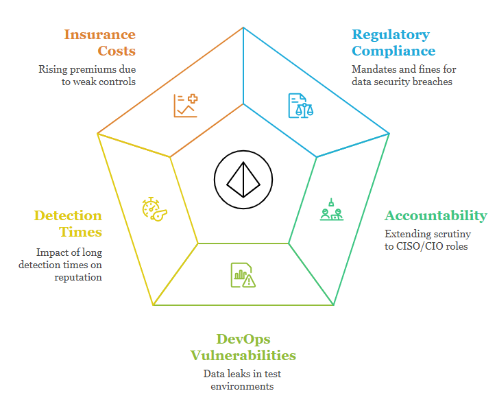Sensitive customer data is everywhere — in databases, APIs, backups, dev/test environments. One breach or misconfiguration can expose millions of records. Indian regulations (DPDP Act, RBI Guidelines, IRDAI, SEBI) are raising the bar on accountability.